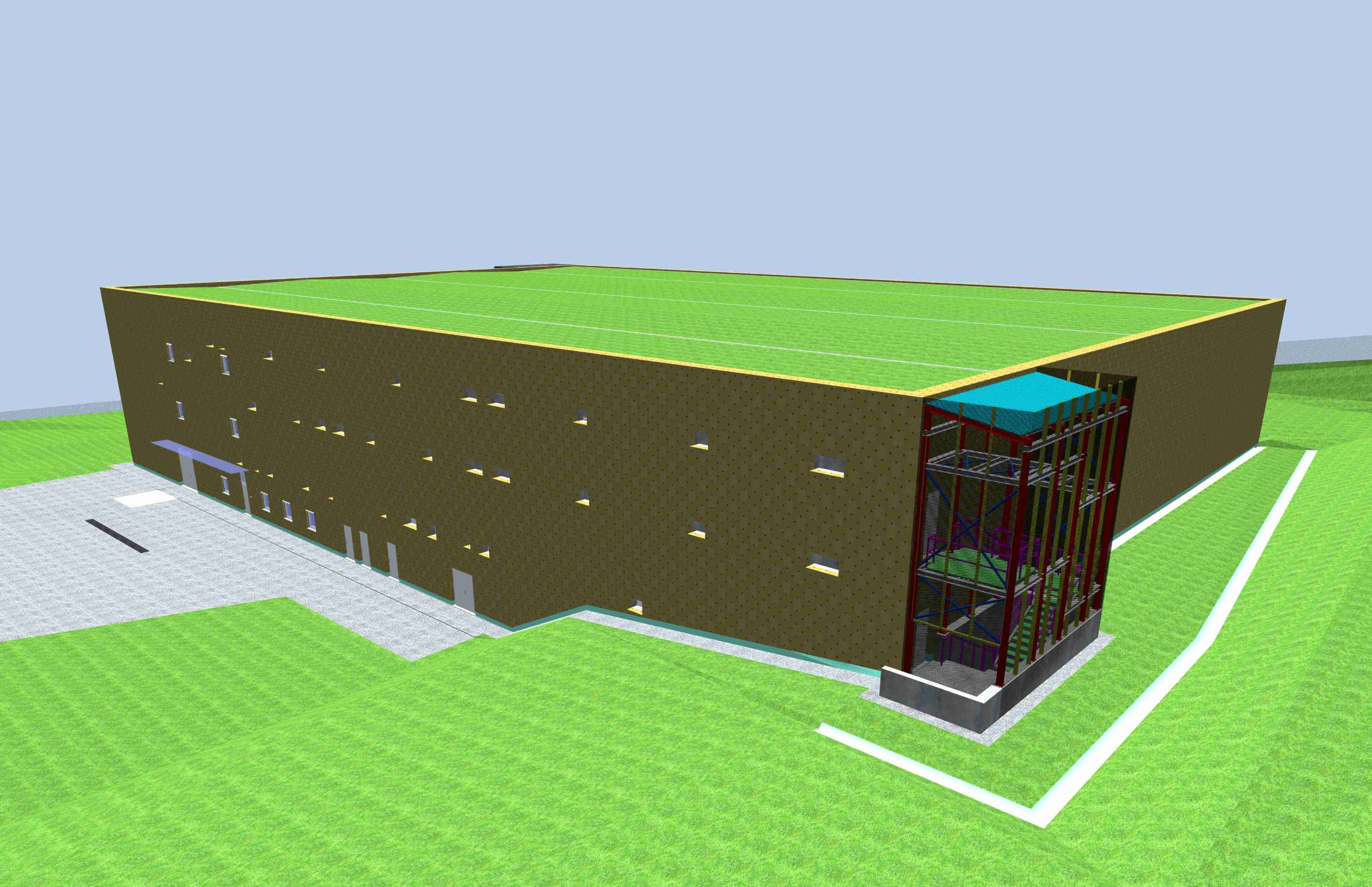 - plochá vegetační střecha s fotovoltaickými panely