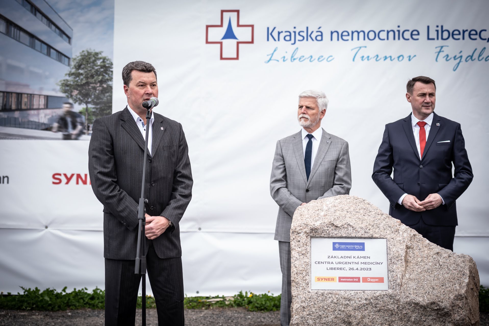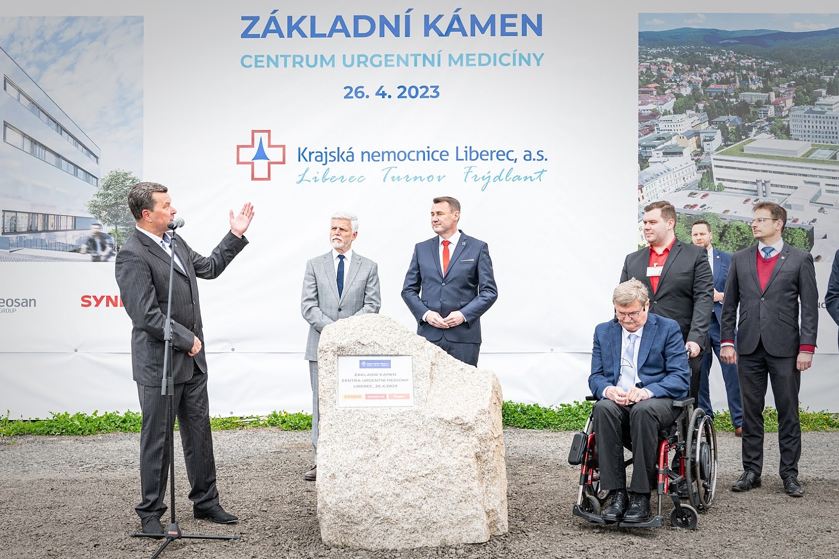V areálu liberecké nemocnice dnes poklepáním na základní kámen za účasti prezidenta republiky Petra Pavla slavnostně odstartovala výstavba Centra urgentní medicíny za více než tři miliardy korun. Symbolického aktu se vedle hlavy státu zúčastnili generální ředitel liberecké nemocnice Richard Lukáš, hejtman Libereckého kraje Martin Půta a za konsorcium stavebních dodavatelů Petr Syrovátko. Dodavatelské sdružení založené jako Společnost pro Nemocnici Liberec SYNER – Metrostav DIZ – GEOSAN GROUP již během dubna převzalo staveniště, aby provedlo přípravné práce, ověřilo vedení inženýrských sítí a celý dotčený areál oplotilo.