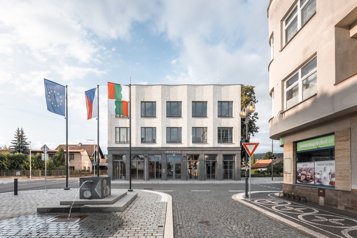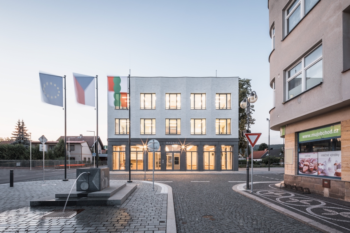 Inspirováni původním stavem navrhujeme novou budovu v čele podlouhlého náměstí K. V. Raise. Radnice má tři podlaží. Přízemí je vizuálně velmi otevřené a obsahuje víceúčelový sál, zasedací místnost a podatelnu s infocentrem. V dalších dvou patrech jsou kancelářské prostory radnice a vedení města, které jsou propojeny atriem prosvětleným lucernou.