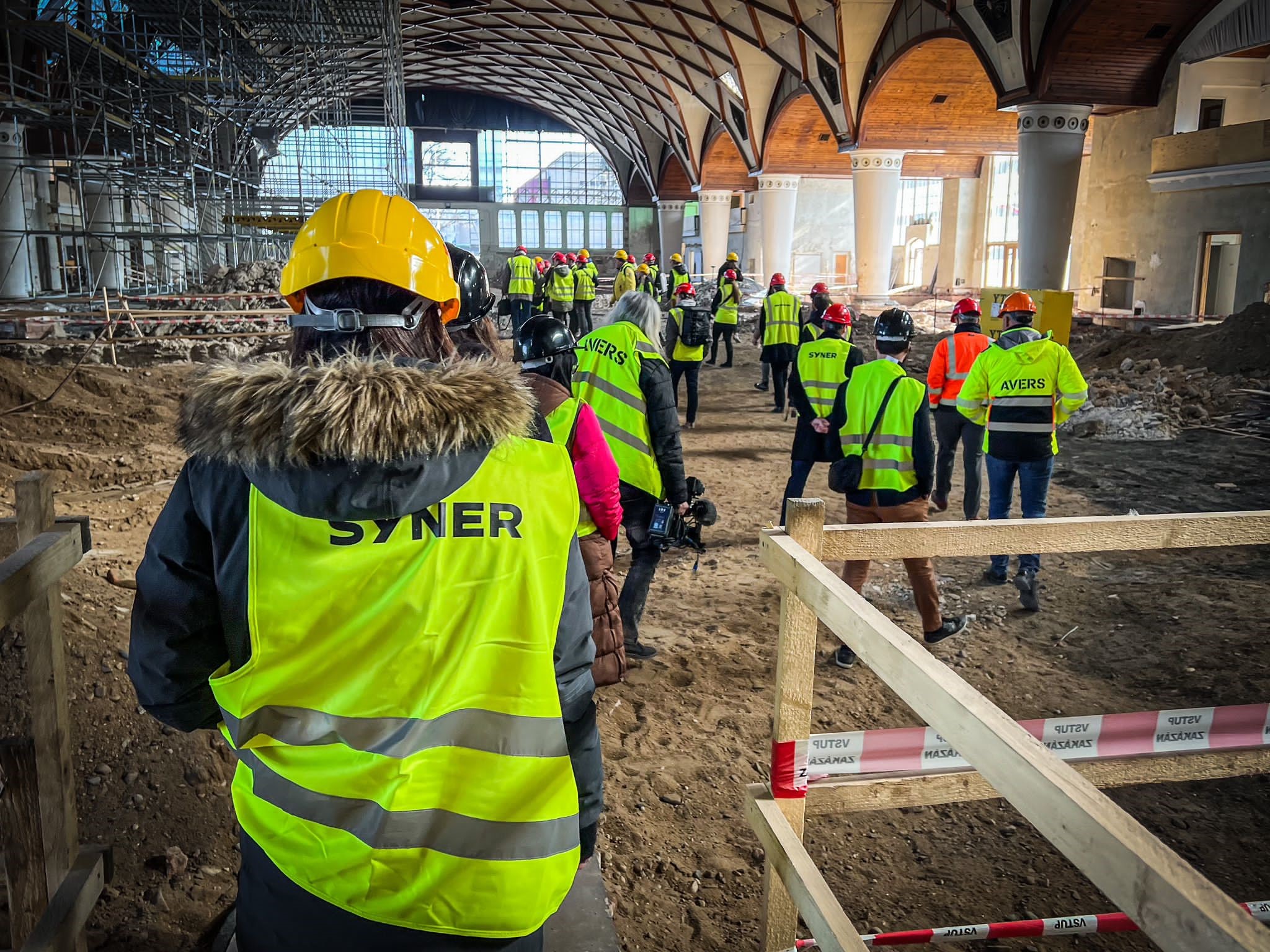 Dominantou celého paláce je ocelová konstrukce, která tvoří hlavní páteř celé stavby a skleněných vitráží. Konstrukce je nedílnou součástí všech tří částí paláce – levého i pravého křídla stejně jako střední haly včetně jejích věžiček a hodinové věže. Nároky na nosnost ocelových konstrukcí se s rekonstrukcí paláce zvyšují, a to především z důvodu přitížení novými vrstvami, které objekt energeticky zefektivní. Proto je nutné provést jejich komplexní revizi a ocelovou konstrukci je potřeba na mnoha místech nejdříve zpřístupnit, aby mohlo dojít k její sanaci. „V 50. letech byla velká část konstrukcí zakryta přestavbou dle návrhu pana architekta Smetany, proto nyní stavba prochází řadou dodatečných bouracích prací. Po zpřístupnění je částečně ocelová konstrukce nahrubo otryskána a dochází k vyhodnocení jejího aktuální stavu. Už nyní je jasné, že je potřeba na některých místech určité části vyztužit, jinde zase budou přidány celé nové prvky pro zvýšení nosnosti, na které následně přivaříme nýty, abychom dodrželi původní vzhled konstrukce. Práce pak završí finální nátěr v olivově šedém odstínu,“ říká David Čech, vedoucí projektu. Stavební práce na obnově Průmyslového paláce zajišťuje dodavatelské sdružení tvořené společnostmi SYNER, Metrostav DIZ, Avers a Metrostav. „Po statickém zajištění okolních částí Průmyslového paláce v prostorách jeho levého křídla nyní dokončujeme hrubé zemní práce. Současně s nimi běží výstavba nového monolitického skeletu,” vyjmenovává aktuální stav jednatel SYNER Robert Špott.