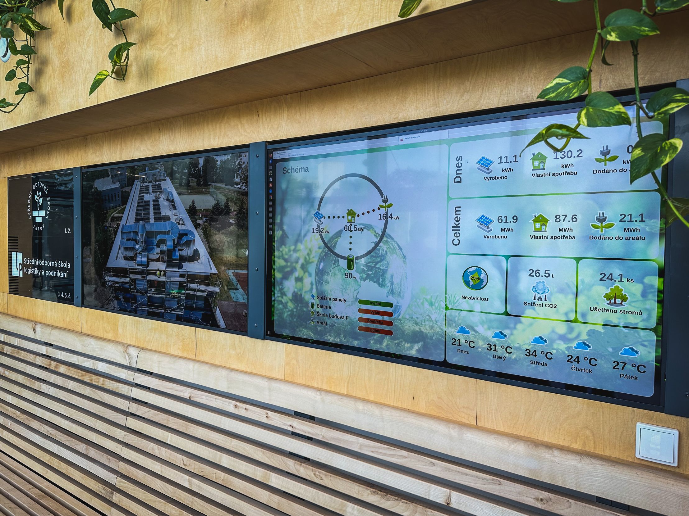 „Střední odborná škola Jarov dostala v průběhu roku 2024 do užívání dvě nově zrekonstruované inteligentní budovy – první byla na jaře budova pro odborný výcvik floristů v areálu naší školní botanické zahrady. Druhá je od září 2024 budova teoretického vyučování v areálu Jarov, která má téměř nulovou spotřebou energie. Zároveň není tento objekt pouze školní budovou, ale také originální učební pomůckou. Naši žáci stavebních oborů budou mít možnost se bezprostředně seznámit např. s provozem tepelných čerpadel země/voda, fotovoltaikou, inteligentním řízením provozu celé budovy, žáky zahradnických oborů bude jistě zajímat systém akumulace či retence dešťových vod,“ uvádí ředitel školy Miloslav Janeček.