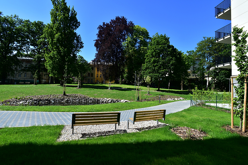 Před zahájením výstavby rezidenčního komplexu se o lokalitu mezi Vítěznou a Ondříčkovou ulicí, kdy je převážná většina pozemků ve vlastnictví města, přes 15 let nikdo nestaral. Území bylo ghettem v plném smyslu: přespávali zde bezdomovci, shlukovali se narkomani, vznikaly zde černé skládky, odumíraly dřeviny, přibývaly nálety a další nepořádek. Tehdejší dendrologický průzkum dokonce ukázal, že bez zásahu by byl prostor pro návštěvníky nebezpečný. „Lokalita byla urbanisticky koncipována jako zahradní město, takže jako logické se vedle výstavby krásných bytů jevila i revitalizace okolí. Vybudovali jsme přístupovou komunikaci, zrekonstruovali část parkoviště, vyměnili oplocení městských pozemků a instalovali veřejné osvětlení. Vznikla nová pěší parková cesta, která prochází celým územím a propojuje Vítěznou ulici s Masarykovou třídou hned ve dvou místech. Největší prostředky v řádu desítek miliónů si vyžádala úprava potoka a terénní a sadové úpravy celého území,“ říká Radek Kotrč odpovědný za tento developerský projekt.