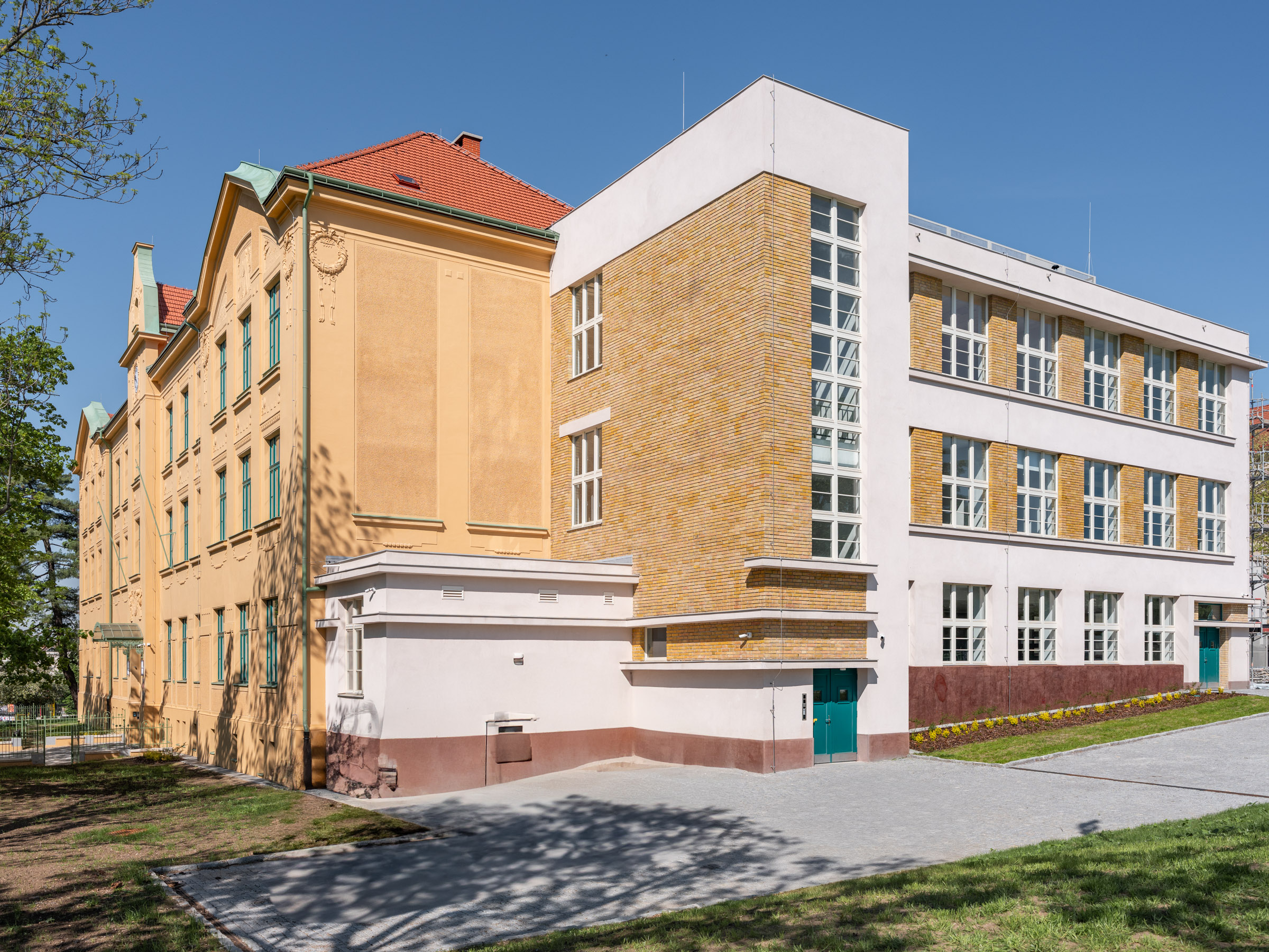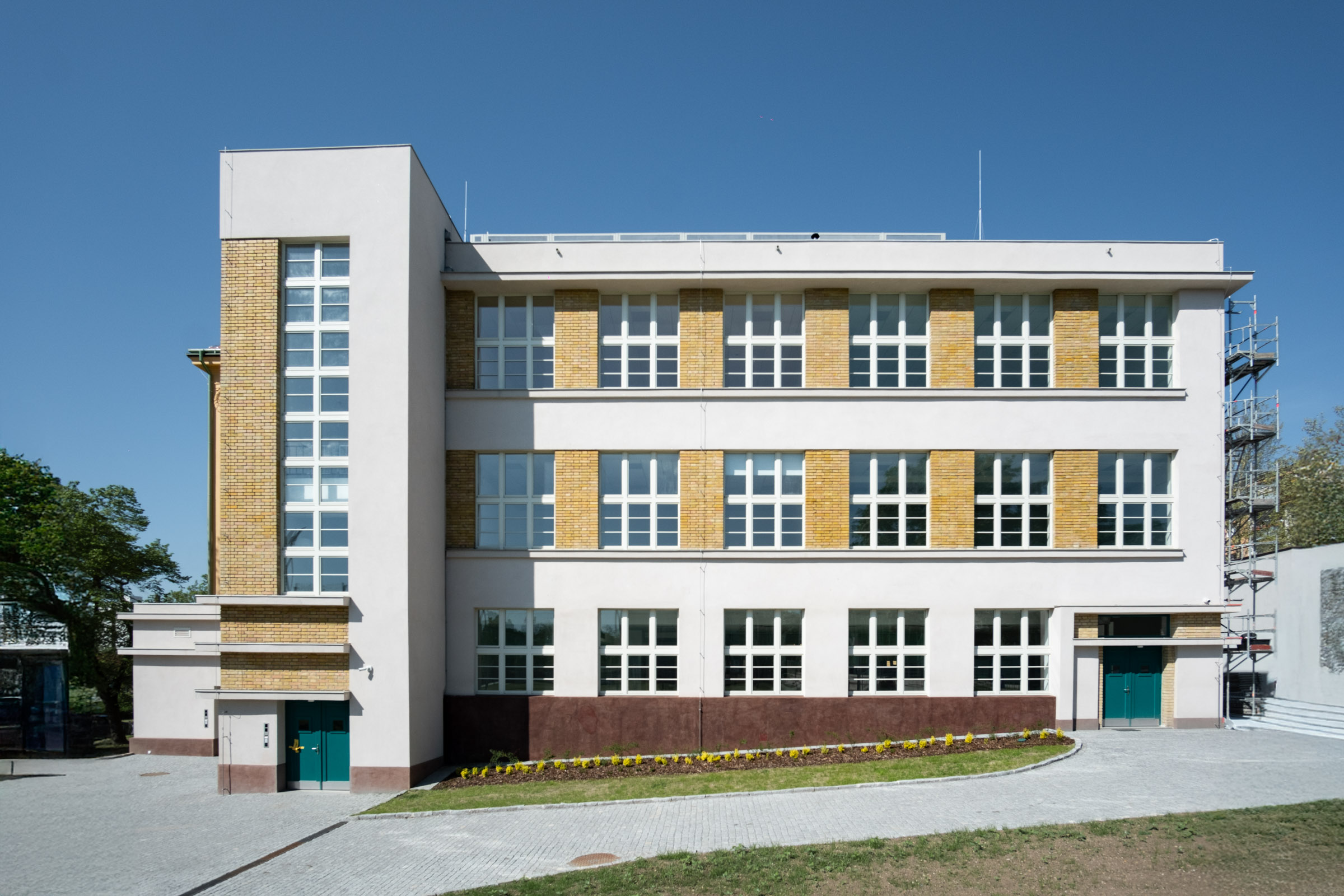 Obnova školy probíhala s mimořádným důrazem na zachování původního vzhledu a atmosféry obou stavebních etap. Díky úzké spolupráci městské části, architektů, památkářů a restaurátorů se podařilo nejen přizpůsobit interiér současným potřebám školství, ale také citlivě zrestaurovat množství historických prvků – od oken a dveří přes zábradlí až po původní umyvadla i keramické obklady.