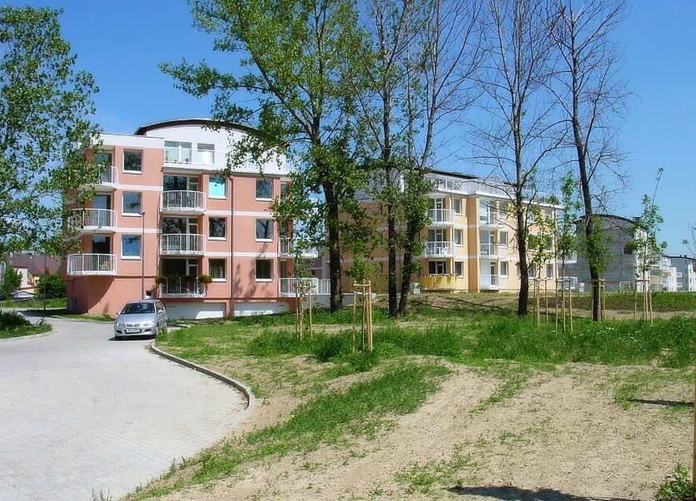 Nove Katerinky residential houses were the first residential houses to be built by SYNER in Praha. The project included ca 300 housing units built on greenfield land. All residential houses were built using the same system of construction. The houses are based on strip foundations with a monolithic basement. All above-ground floors are masoned with ceramic blocks, the partition walls between individual flats are made of acoustic bricks. The ceilings are monolithic with round prefabricated balconies and stair flights. The roof construction consists of wooden arched glued roof trusses. Underground garages with green roofs which serves as a garden for the ground floor flats were built between the houses.