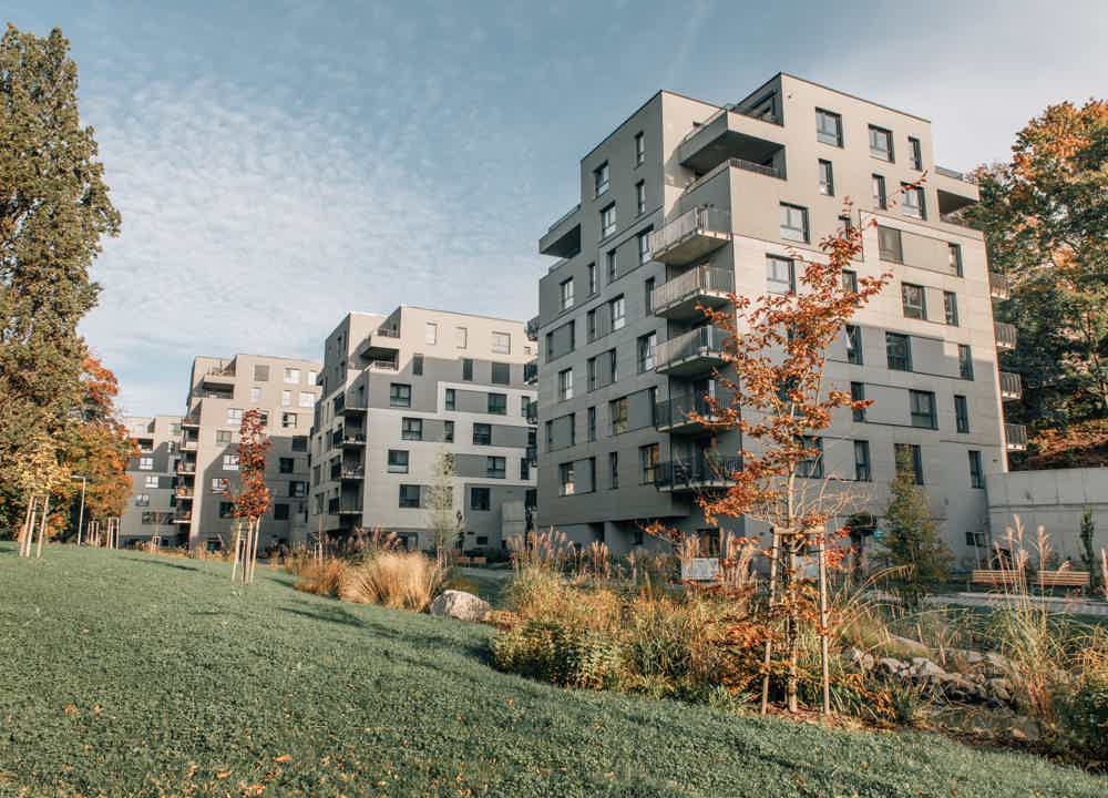 The buildings offer a wide range of apartments, from small ones with two rooms and a kitchen unit to above-standard apartments featuring four rooms and a kitchen unit, and boasting an elaborate layout offering high standard furnishing. Most flats have either a balcony or terrace, or both. Each flat has a parking place and a cellar or pantry.