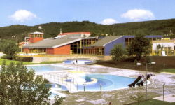 Umístění stavby do prostoru bývalé skládky a v těsné blízkosti řeky Ploučnice (tedy do zátopového území) značně ovlivnilo konstrukční řešení celého objektu, především samotného zakládání. Objekt je založen na velkoprofilových hlubinných pilotách a suterén tvoří kompaktní železobetonová vana s horní hranou v „Q100“ (tedy nad hladinou staleté vody). Nadzemní část objektu je pak kombinací zděných svislých, železobetonových vodorovných a doplňkových ocelových konstrukcí s částečně rovnou a částečně pultovou střechou. Kromě 25 m plaveckého bazénu se v objektu nacházejí dva venkovní a jeden vnitřní široký tobogán, dvě vířivky, relaxační bazén s průplavem do venkovní divoké řeky a dětské brouzdaliště. Dále je zde wellness, tělocvična, masáže, solária a další doplňkové služby. Samozřejmostí jsou šatny, sprchy a toalety pro návštěvníky, a to jak společné, tak i skupinové. Celý provoz je zde postaven na termální vodě, která je (po předupravení na pitnou vodu) využívána pro samotné napouštění bazénů, vytápění objektu pomocí tepelných čerpadel, sprchování a před vypuštěním do kanalizace i jako voda užitková.