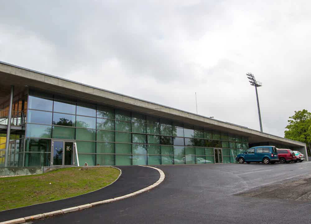 Stavba zahrnovala demolici stávajícího objektu ,,Střelnice“ a výstavbu nového multifunkčního zařízení o celkových půdorysných rozměrech cca 75×18 m. Výška objektu je proměnná v závislosti na spád střešní konstrukce s celkovým rozmezím +3,49/7,40m. Samotná střešní krytina je PVC folie. Z uživatelského hlediska je objekt rozdělen na zázemí pro FK (fanshop, pokladny, archiv, informační centrum), vstupní prostory do areálu fotbalového stadionu (vč. turniketů), multifunkční objekt (sál, prostory gastro, technické a sociální zázemí) a terasu. Z konstrukčního hlediska se jedná o ŽB skelet (sendvič ve složení beton/XPS/beton), založený betonovými pasy na skalnatém podloží. Veškeré svislé a vodorovné konstrukce nad úrovní terénu jsou realizovány jako pohledový beton s povrchovou úpravou transparentním nátěrem antigrafiti. Vnější výplně otvorů jsou tvořeny systémovými konstrukčními prvky z AL zasklenými trojsklem. Součástí stavby byla realizace TZB, přeložka vodovodního řadu LT DN 250, inženýrské sítě, areálové komunikace a sadové úpravy.